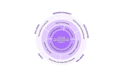 The purpose of institutional education is to create the conditions for a good and sustainable life, educate for democratic and responsible citizenship within and beyond Finland, as well as support continuous growth, development and Bildung throughout life. Enacting this purpose in a more complex and unpredictable world presupposes teachers’ strong professionalism and professional agency to learn independently and together with others throughout the teacher career.