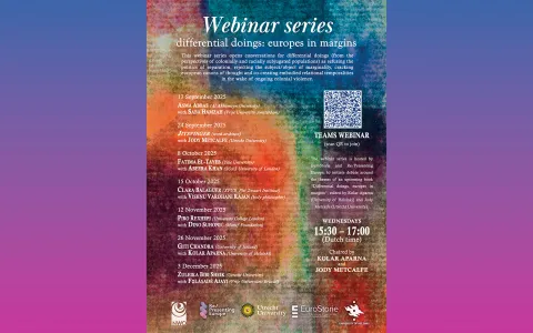 Jody is the author of “Countering Colonial Memory Through Public and Popular Culture in Cape Town” (2025) and several other publications and collaborative works. She is also the co-editor of the edited volume, differential doings, europes in margins (forthcoming 2026). Please join the webinar series via this link. Please be aware that the time of the event is based on Dutch time. This link will be valid throughout the series. If you have any technical issues please contact