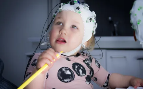 Aivosähkökäyrätutkimuksen aikana 2-vuotias saa katsoa mieluisaa äänetöntä piirrettyä tv-ruudulta. Vaikka ruutuaikaa ei suositella arjessa pienille lapsille, tutkimuksessa se on erittäin tärkeä apuri: tutkimme lasten aivojen kykyä käsitellä puhetta automaattisesti ja tiedostamatta. Silloin on hyvin arvokasta, että lapsi pysyy hiljaa paikoillaan ja uppoutuu mieluisaan ohjelmaan eikä välitä kuulemistaan puheäänistä. Vauhtivauvassakin kutsutaan siis apuun vaikkapa Ryhmä Hau!