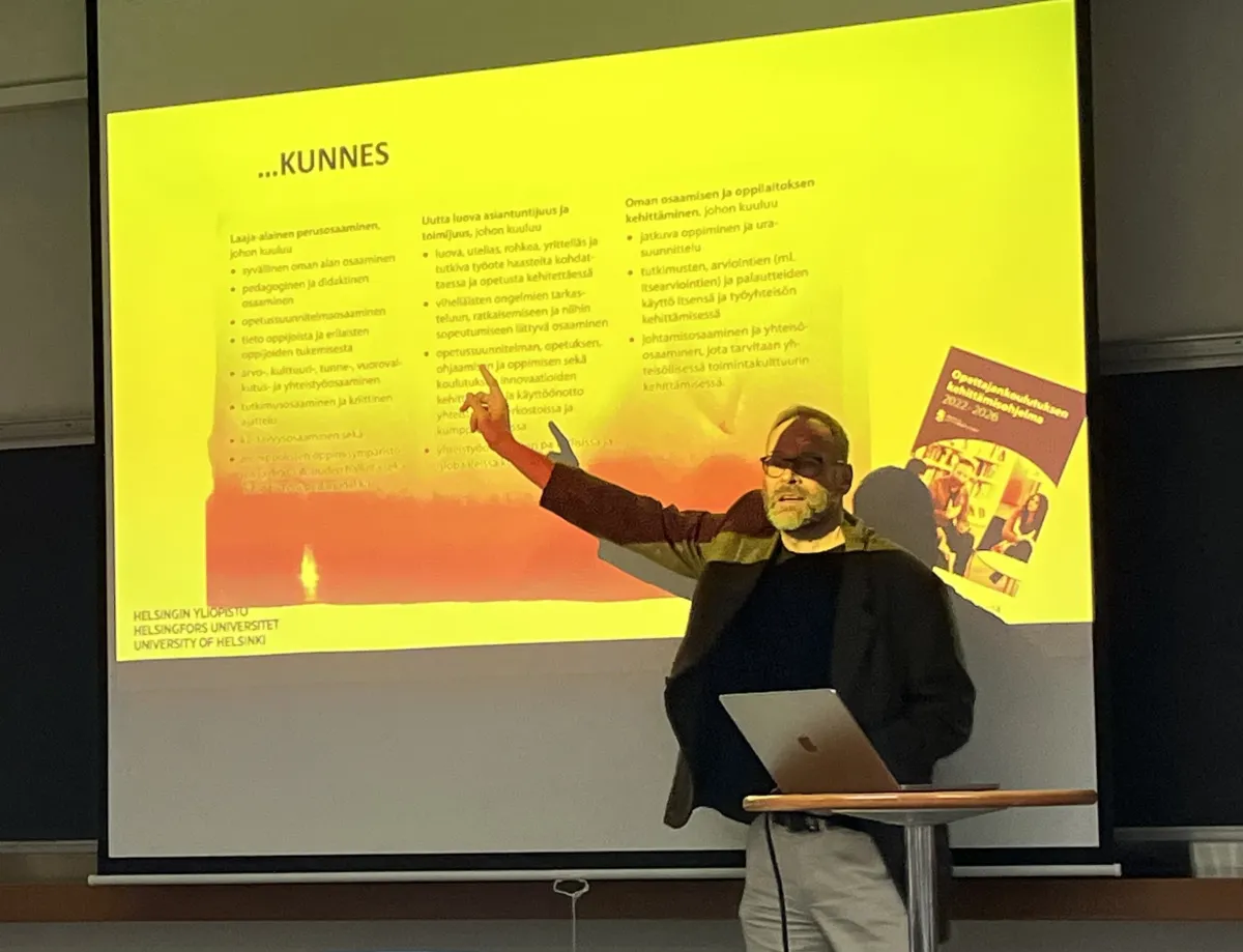 Mikko Puustinen oli ainedidaktiikan symposiumin keynote-puhujana 13.2.2026. Kuva: Jukka Rantala